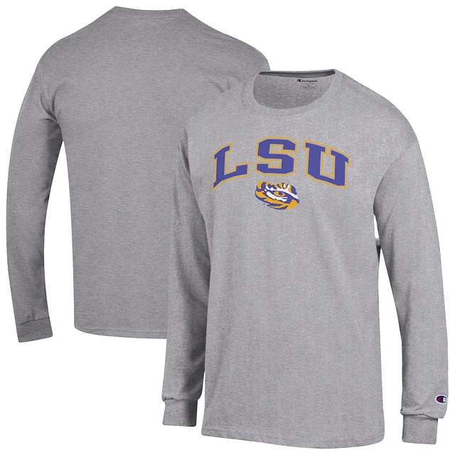 Men's Champion Heather Gray LSU Tigers Arch Over Logo Long Sleeve T-Shirt