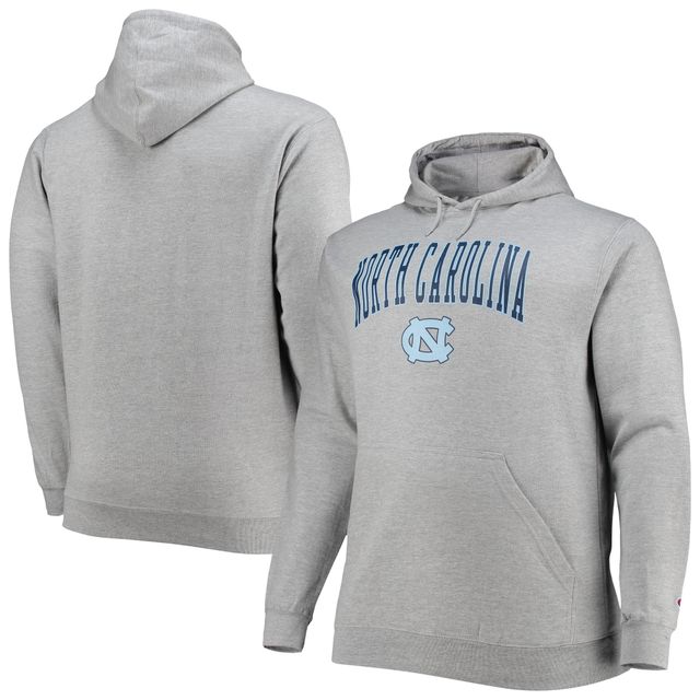 Men's Champion Heather Gray North Carolina Tar Heels Big & Tall Arch Over Logo Powerblend Pullover Hoodie