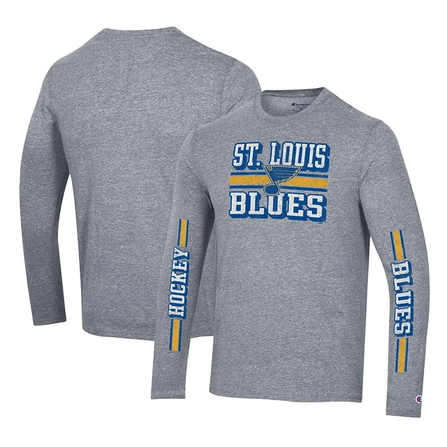 Men's Champion Heather Gray St. Louis Blues Tri-Blend Dual-Stripe Long Sleeve T-Shirt