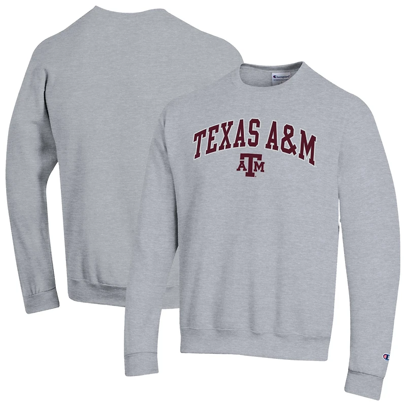 Stay warm and rep the Texas A&M Aggies with this Champion Arch Over Logo Pullover Sweatshirt. This classic crew neck sweatshirt features a screen print team wordmark and logo, showcasing your Texas A&M Aggies pride in style. The fleece lining adds an extra layer of warmth and comfort, making it perfect for cooler game days or cozy nights in.