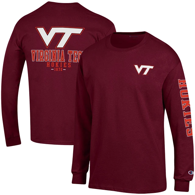 Men's Champion Maroon Virginia Tech Hokies Team Stack Long Sleeve T-Shirt