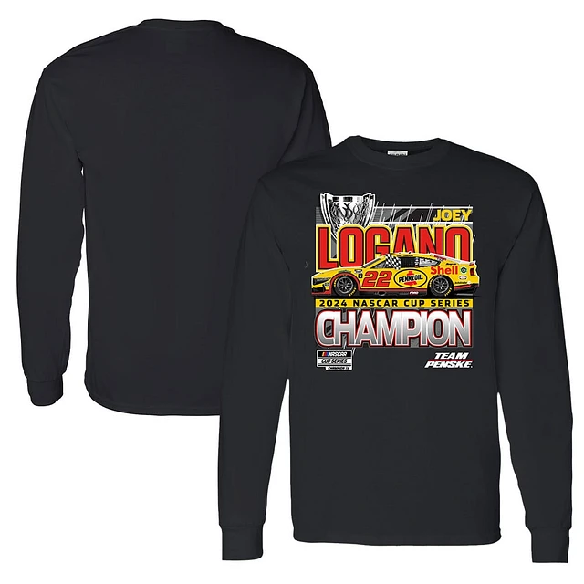 Men's Checkered Flag Sports Black Joey Logano 2024 NASCAR Cup Series Champion Official Long Sleeve T-Shirt