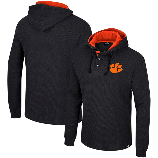 Men's Colosseum Black Clemson Tigers Affirmative Thermal Hoodie Long Sleeve T-Shirt