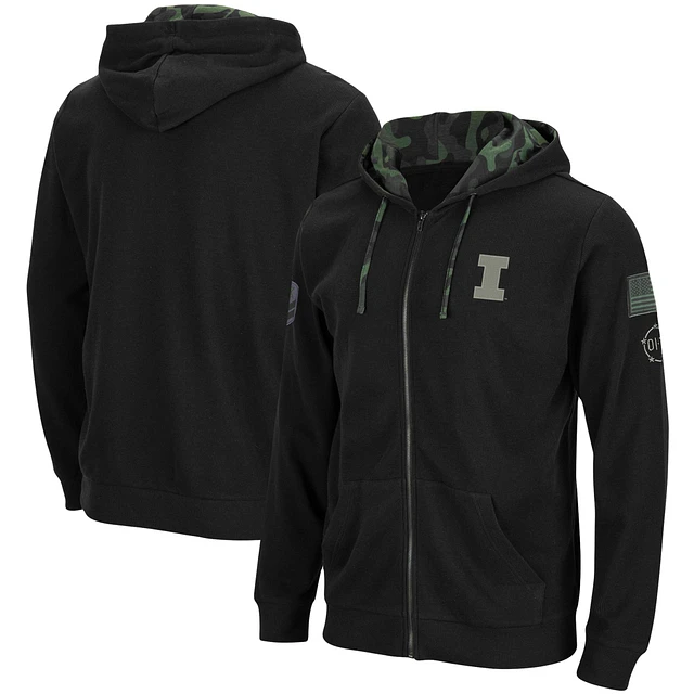 Men's Colosseum Black Illinois Fighting Illini OHT Slim Fit Lightweight Waffle Full-Zip Hoodie