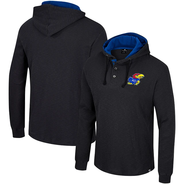 Men's Colosseum Black Kansas Jayhawks Affirmative Thermal Hoodie Long Sleeve T-Shirt