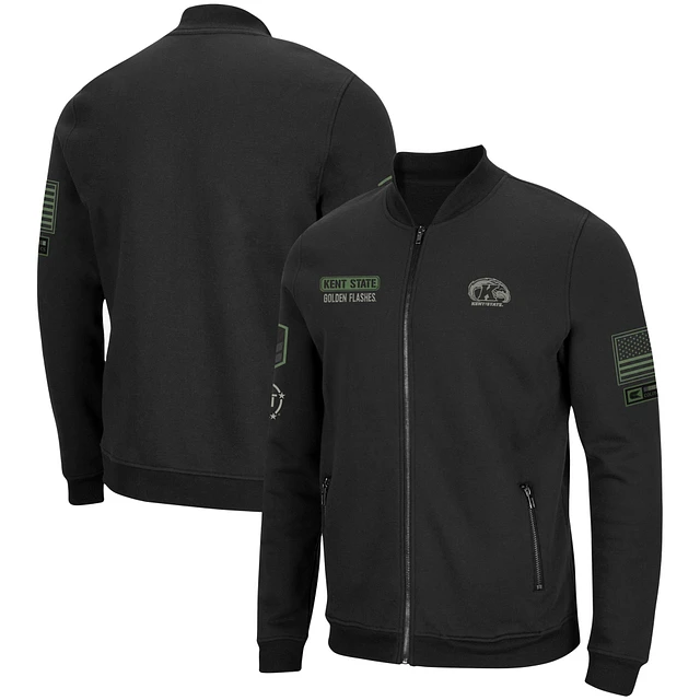 Men's Colosseum Black Kent State Golden Flashes OHT Military Appreciation High-Speed Bomber Full-Zip Jacket
