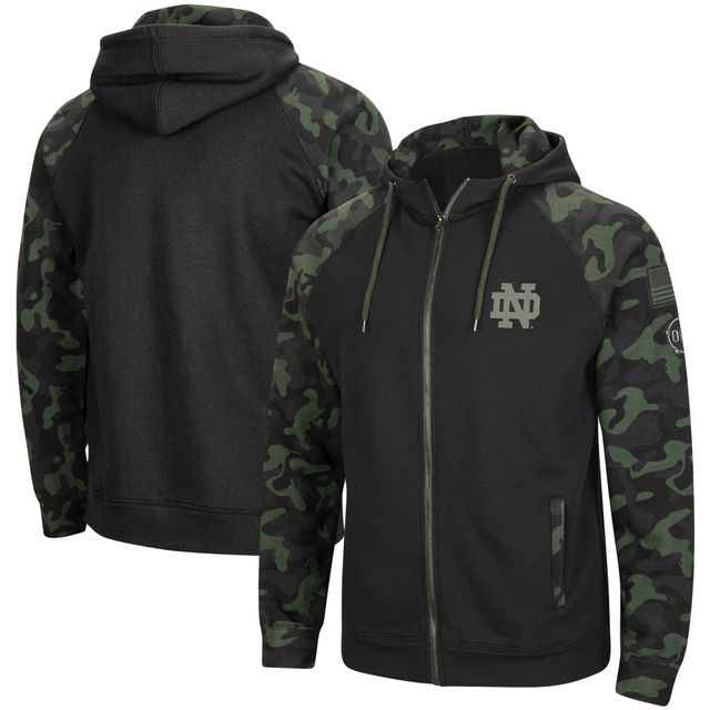 Men's Colosseum Black Notre Dame Fighting Irish OHT Military Appreciation Camo Raglan Full-Zip Hoodie