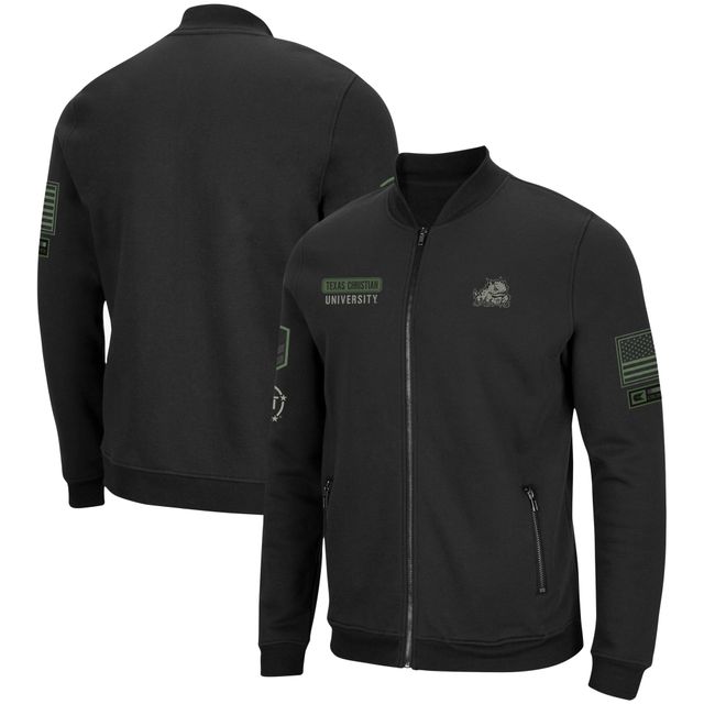 Men's Colosseum Black TCU Horned Frogs OHT Military Appreciation High-Speed Bomber Full-Zip Jacket