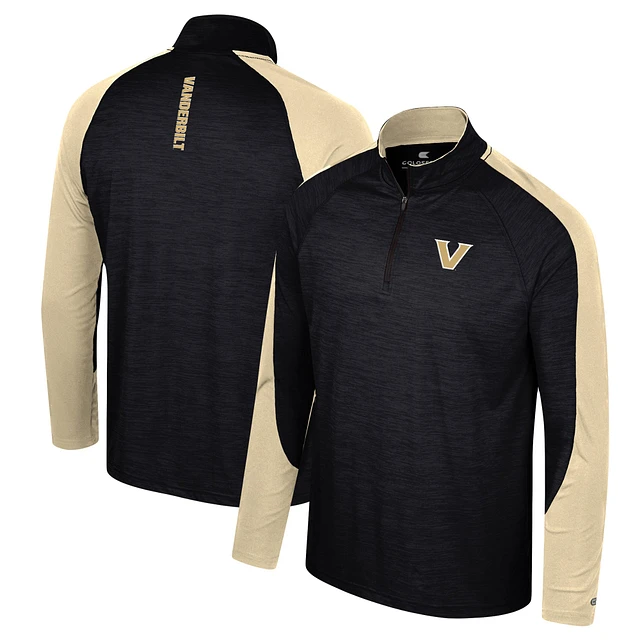 Men's Colosseum Black Vanderbilt Commodores Langmore Raglan Quarter-Zip Top