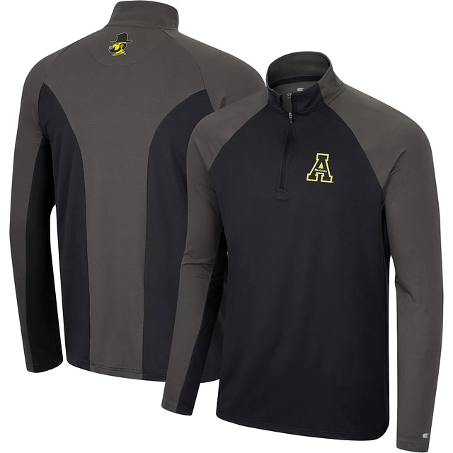 Men's Colosseum Black/Charcoal Appalachian State Mountaineers Two Yutes Raglan Quarter-Zip Windshirt
