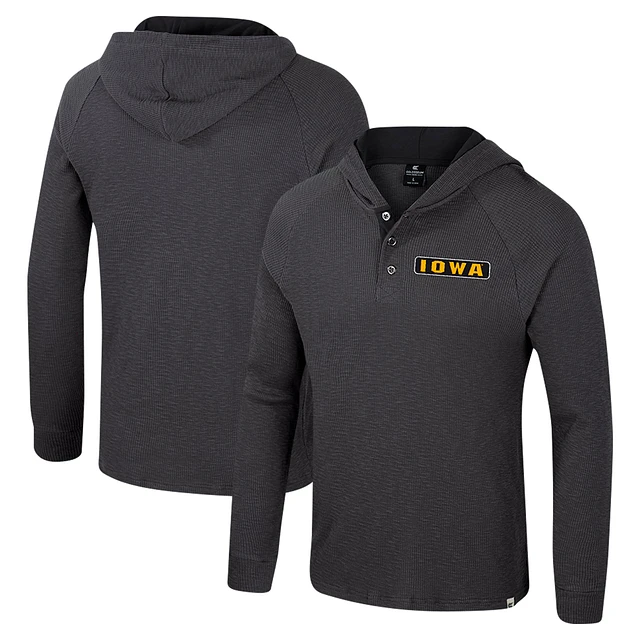 Men's Colosseum Charcoal Iowa Hawkeyes Dujour Ralgan Long Sleeve Henley Hoodie T-Shirt