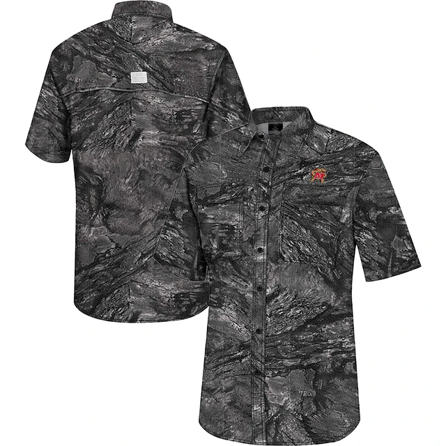 Men's Colosseum Charcoal Maryland Terrapins Realtree Aspect Charter Full-Button Fishing Shirt