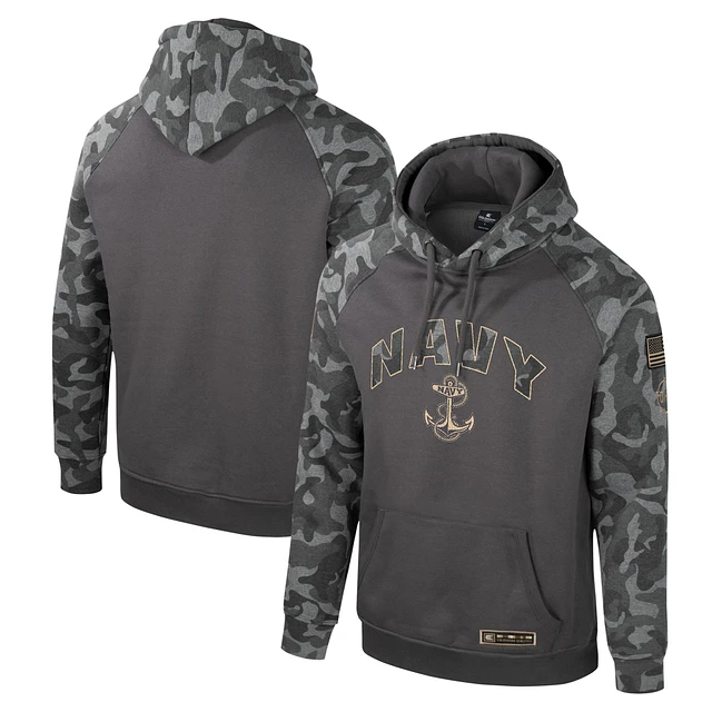 Men's Colosseum Charcoal Navy Midshipmen OHT Military Appreciation Camo Raglan Pullover Hoodie