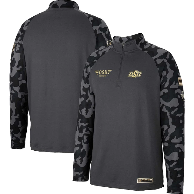 Men's Colosseum Charcoal Oklahoma State Cowboys OHT Military Appreciation Long Range Raglan Quarter-Zip Jacket