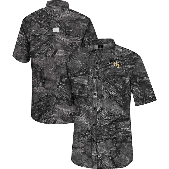 Men's Colosseum Charcoal Wake Forest Demon Deacons Realtree Aspect Charter Full-Button Fishing Shirt