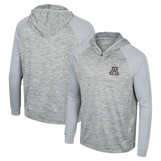 Men's Colosseum Gray Arizona Wildcats Cybernetic Raglan Quarter-Zip Hooded Top