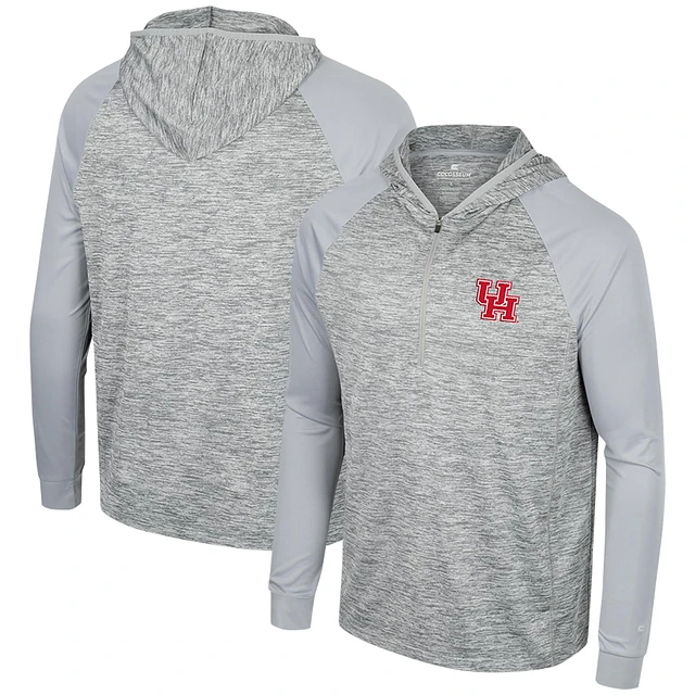 Men's Colosseum Gray Houston Cougars Cybernetic Raglan Quarter-Zip Hooded Top