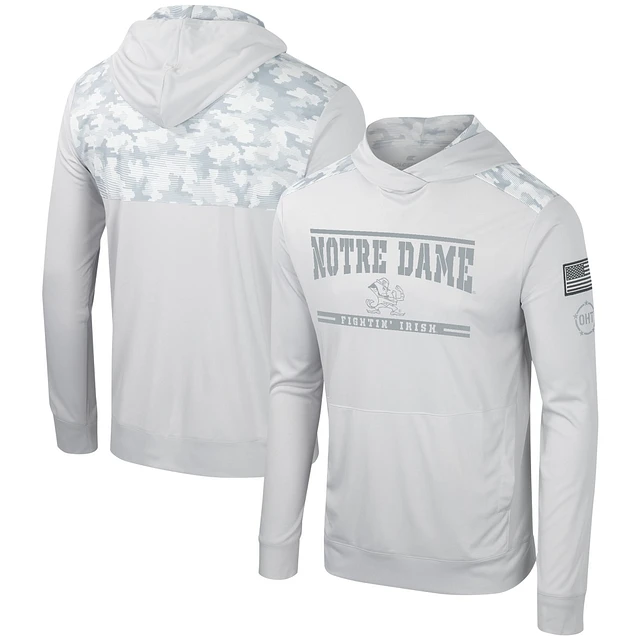Men's Colosseum Gray Notre Dame Fighting Irish OHT Military Appreciation Long Sleeve Hoodie T-Shirt