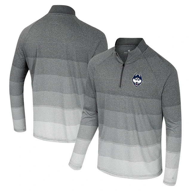 Men's Colosseum Gray UConn Huskies AI Striped Mesh Quarter-Zip Raglan Windshirt
