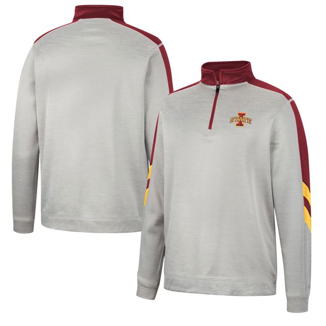 Men's Colosseum Gray/Cardinal Iowa State Cyclones Bushwood Fleece Quarter-Zip Jacket