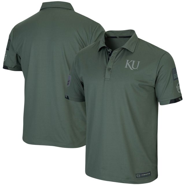 Men's Colosseum Green Kansas Jayhawks OHT Military Appreciation Echo Polo