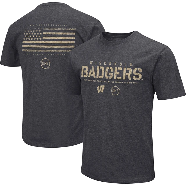 Men's Colosseum Heather Black Wisconsin Badgers Big & Tall OHT Military Appreciation Playbook T-Shirt