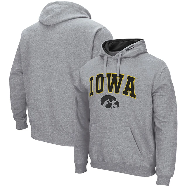 Men's Colosseum Heather Gray Iowa Hawkeyes Arch & Logo 3.0 Pullover Hoodie