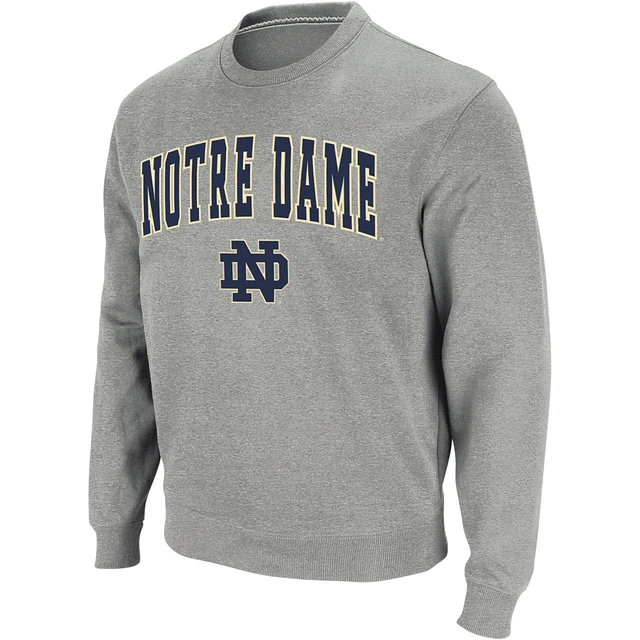 Men's Colosseum Heather Gray Notre Dame Fighting Irish Arch & Logo Crew Neck Sweatshirt
