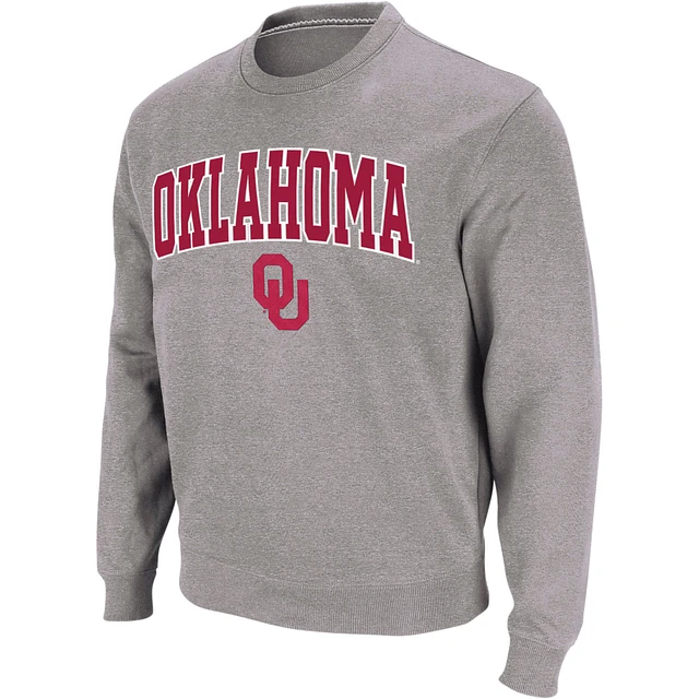 Men's Colosseum Heather Gray Oklahoma Sooners Arch & Logo Crew Neck Sweatshirt