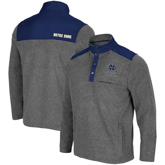 Men's Colosseum Heathered Charcoal/Navy Notre Dame Fighting Irish Huff Snap Pullover