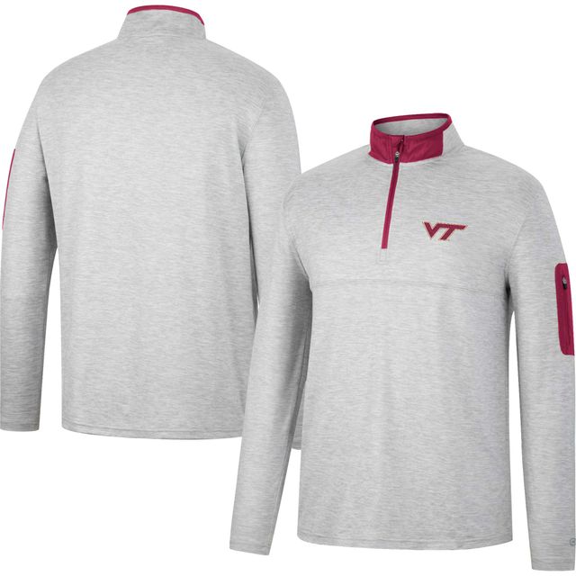 Men's Colosseum Heathered Gray/Maroon Virginia Tech Hokies Country Club Windshirt Quarter-Zip Jacket