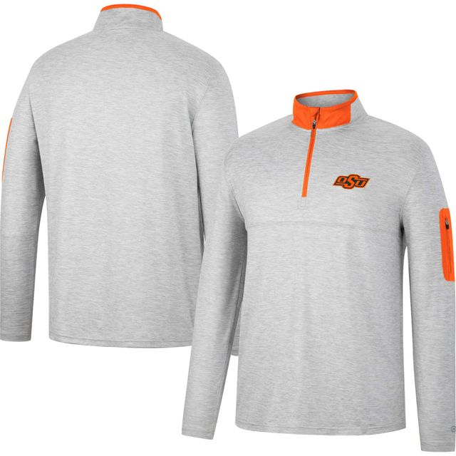 Men's Colosseum Heathered Gray/Orange Oklahoma State Cowboys Country Club Windshirt Quarter-Zip Jacket