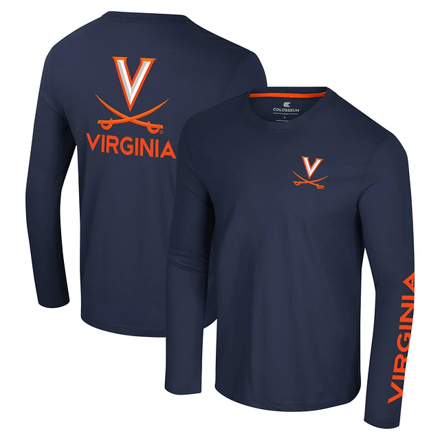 Men's Colosseum Navy Virginia Cavaliers Logo Lockup 3-Hit Active Blend Long Sleeve T-Shirt
