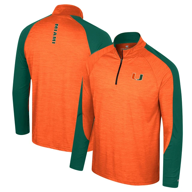 Men's Colosseum Orange Miami Hurricanes Langmore Raglan Quarter-Zip Top