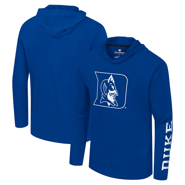 Men's Colosseum Royal Duke Blue Devils Logo Lockup Active Blend Long Sleeve T-Shirt Hoodie