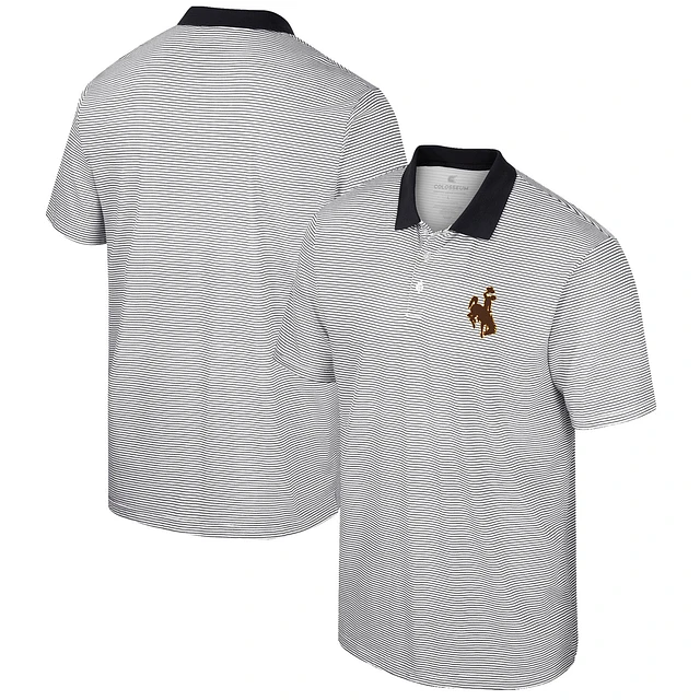 Men's Colosseum White Wyoming Cowboys Print Stripe Polo