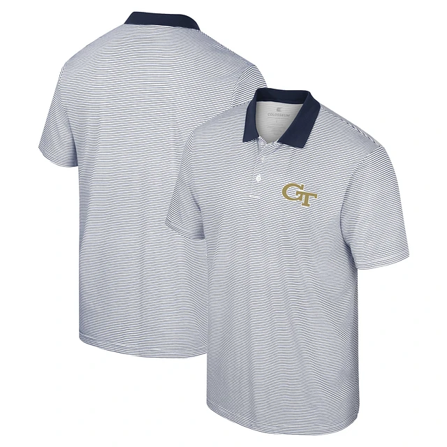 Men's Colosseum White/Navy Georgia Tech Yellow Jackets Print Stripe Polo