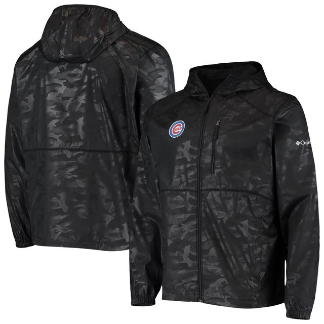 Men's Columbia Black Chicago Cubs Camo Flash Forward Full-Zip Windbreaker Jacket