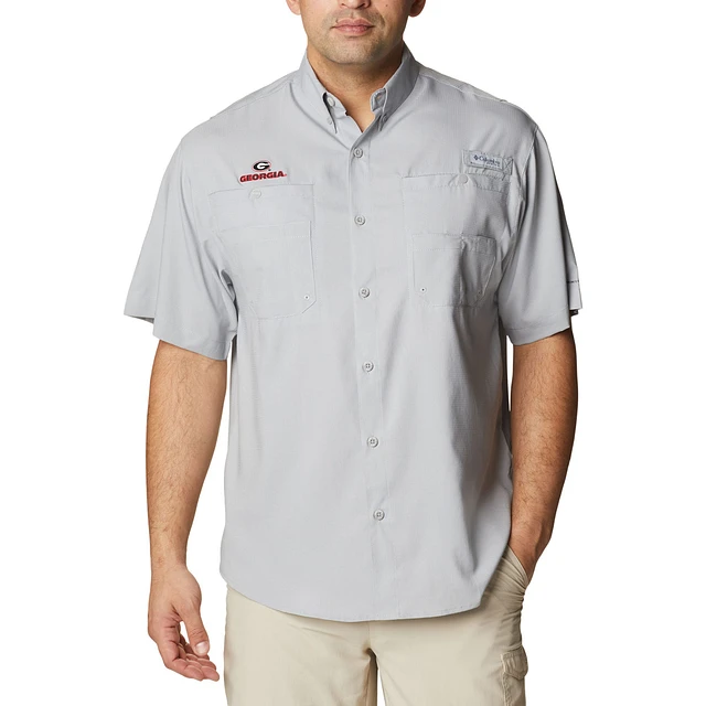 Men's Columbia Gray Georgia Bulldogs PFG Tamiami Omni-Shade Button-Down Shirt