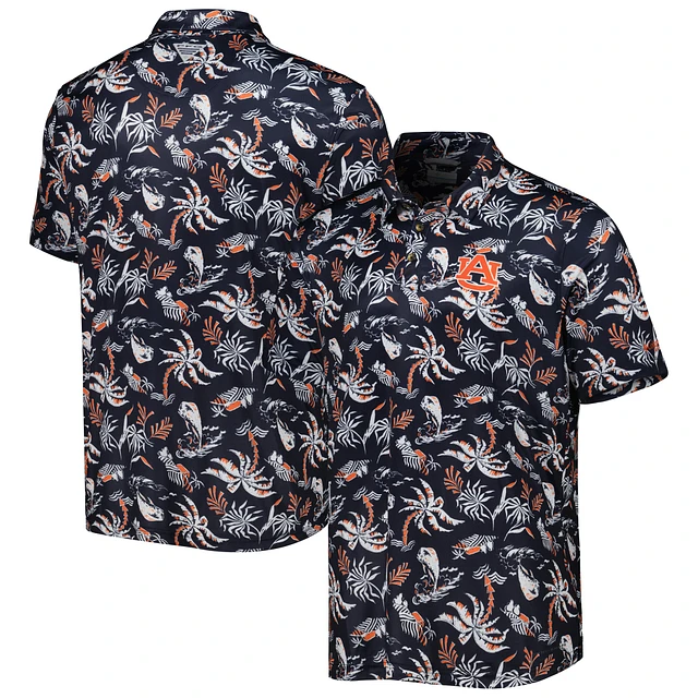 Men's Columbia Navy Auburn Tigers Super Terminal Tackle Omni-Shade Polo