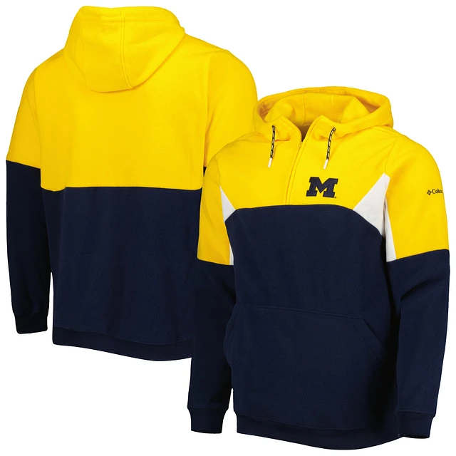Men's Columbia Navy Michigan Wolverines Lodge Quarter-Zip Hoodie