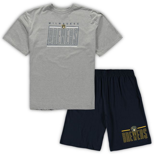 Men's Concepts Sport Heathered Gray/Navy Milwaukee Brewers Big & Tall T-Shirt Shorts Sleep Set