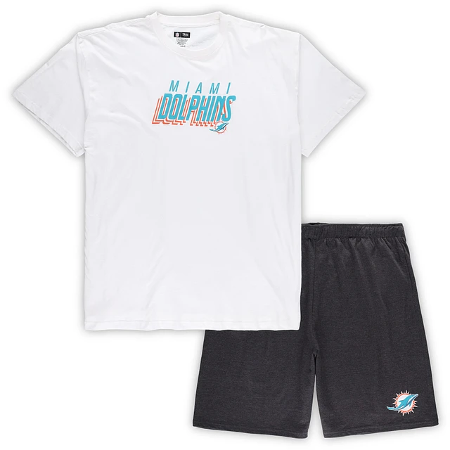 Men's Concepts Sport White/Charcoal Miami Dolphins Big & Tall T-Shirt and Shorts Set