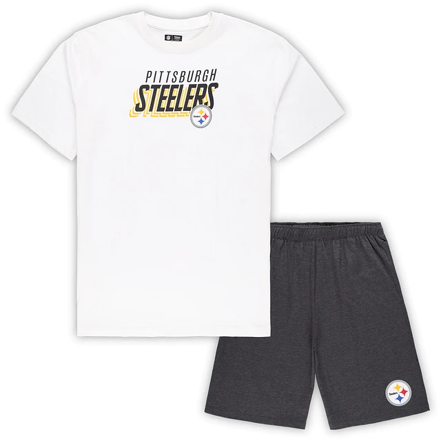 Men's Concepts Sport White/Charcoal Pittsburgh Steelers Big & Tall T-Shirt and Shorts Set