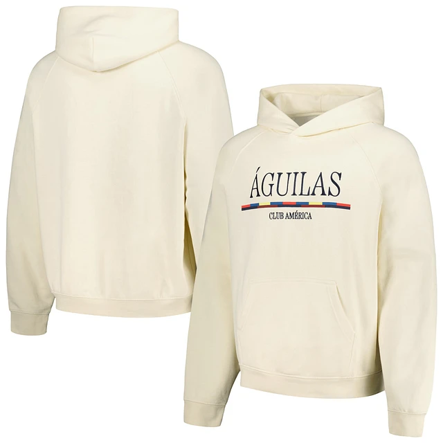 Men's Cream Club America Team Stripe Oversized Pullover Hoodie