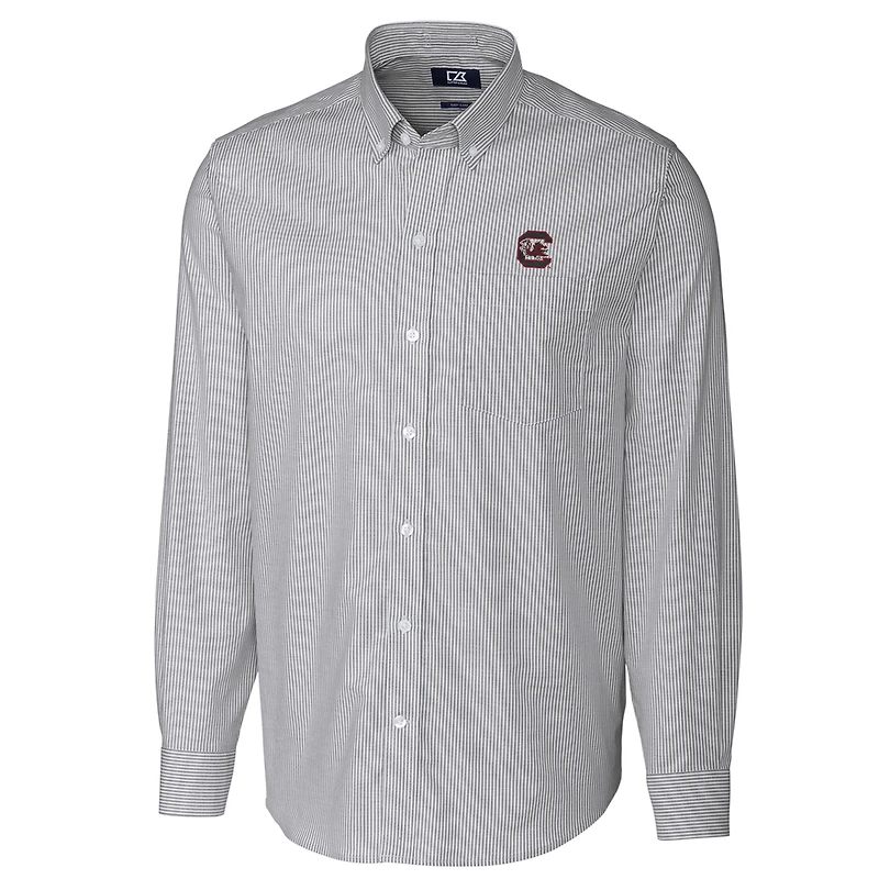 Men's Cutter & Buck Charcoal South Carolina Gamecocks Big Tall Stretch Oxford Stripe Long Sleeve Button Down Shirt