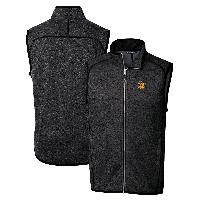 Men's Cutter & Buck Heather Charcoal Baylor Bears Mainsail Sweater-Knit Full-Zip Vest
