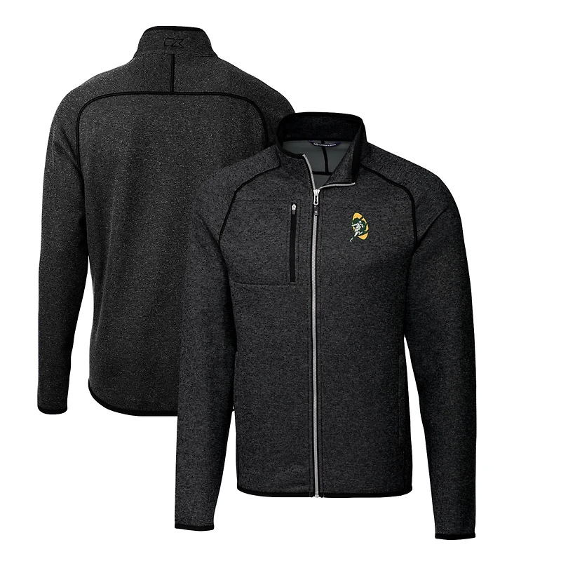 Men's Cutter & Buck Heather Charcoal Green Bay Packers Throwback Logo Mainsail Sweater-Knit Big Tall Full-Zip Pullover Jacket