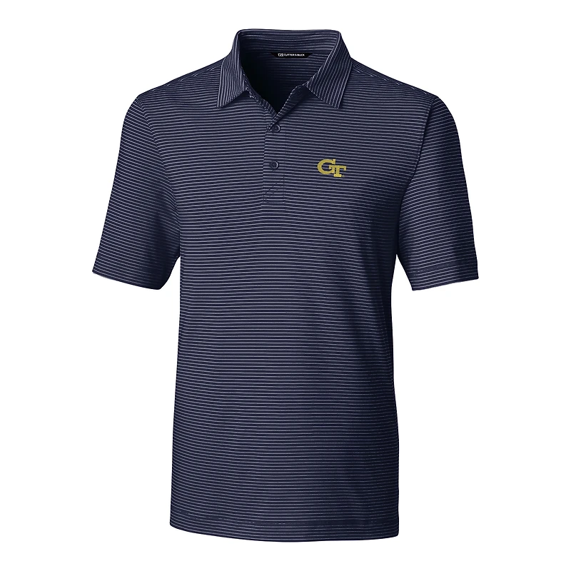 Men's Cutter & Buck Navy Georgia Tech Yellow Jackets Forge Pencil Stripe Polo