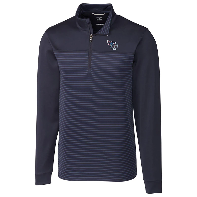 Men's Cutter & Buck Navy Tennessee Titans Traverse Stripe Quarter-Zip Pullover Jacket